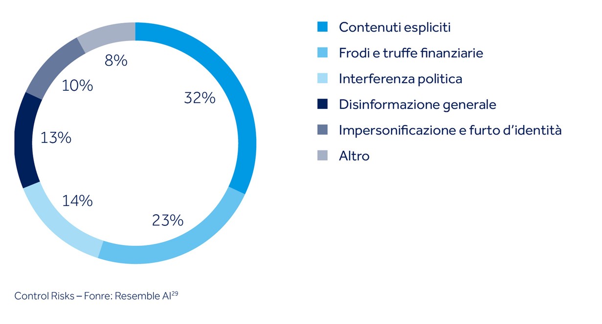 Mentre, nei primi mesi del 2025, i casi di estorsione tramite ransomware sono aumentati del 54% rispetto all’anno precedente. Una crescita che non riguarda solo la frequenza, ma anche la varietà dei contenuti: oggi i deepfake vengono impiegati per truffe finanziarie, disinformazione e furti d’identità.
